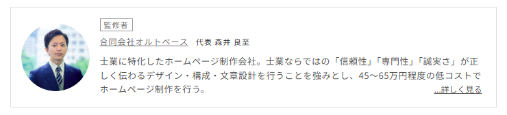 監修にご協力いただくことで評価点数に加点され、業者一覧ページで上位に表示されやすくなります。